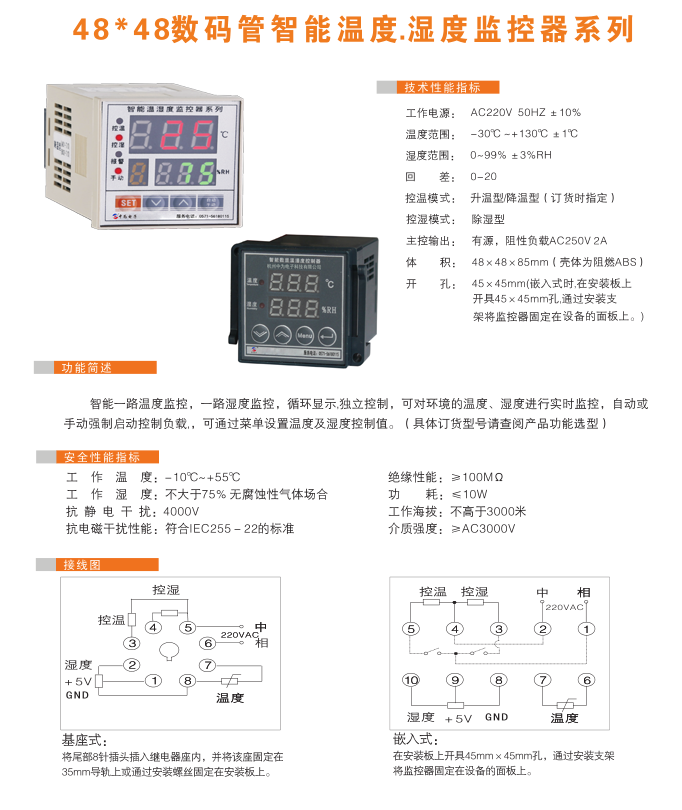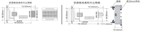 3、安裝方式:面板開(kāi)孔安裝或?qū)к壥桨惭b。